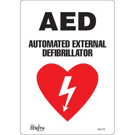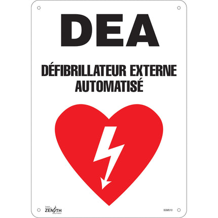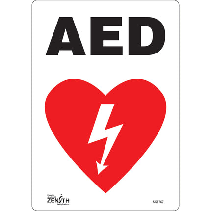 "AED" Sign, 14" x 10", Plastic, English with Pictogram