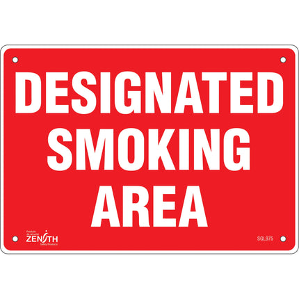 "Designated Smoking Area" Sign, 7" x 10", Aluminum, English