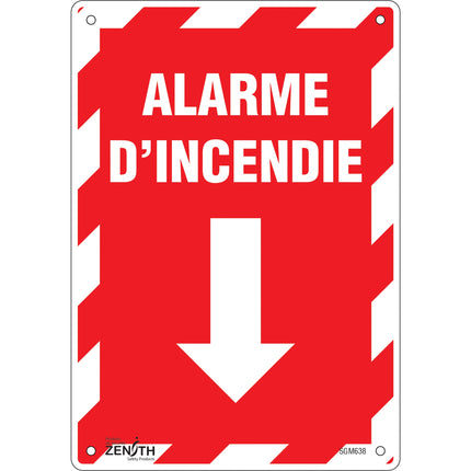 "Alarme D'Incendie" Arrow Sign, 10" x 7", Plastic, French with Pictogram