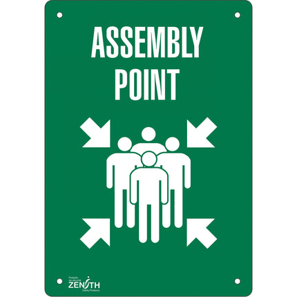 "Assembly Point" Sign, 14" x 10", Aluminum, English with Pictogram
