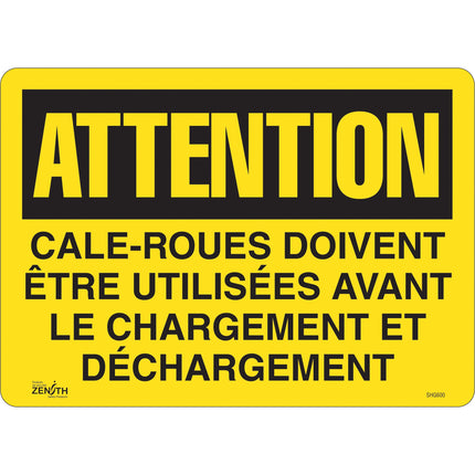 "Cale-roues doivent être utilisées" Sign, 14" x 10", Vinyl, French