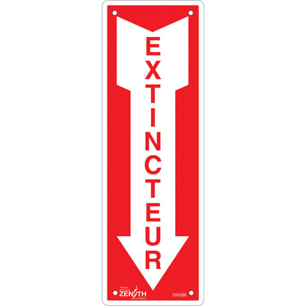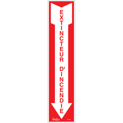 "Extincteur" Arrow Sign, 12" x 4", Vinyl, French with Pictogram