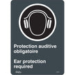 "Ear Protection Required" Sign, 14" x 10", Vinyl, Bilingual with Pictogram