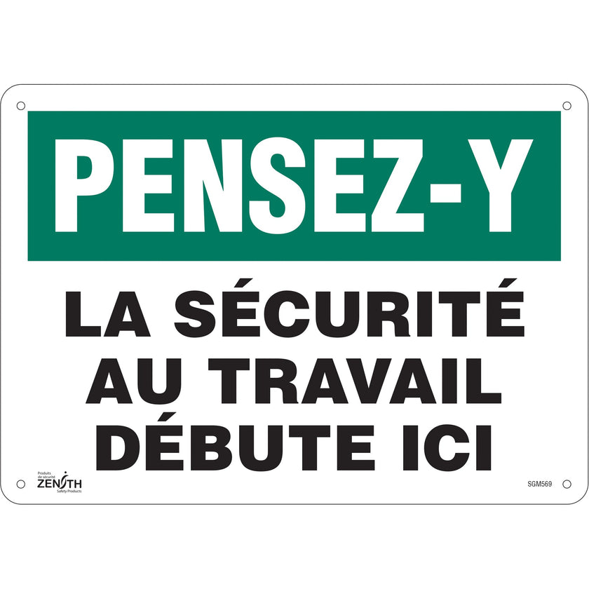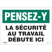 "La Sécurité au Travail" Sign, 10" x 14", Plastic, French