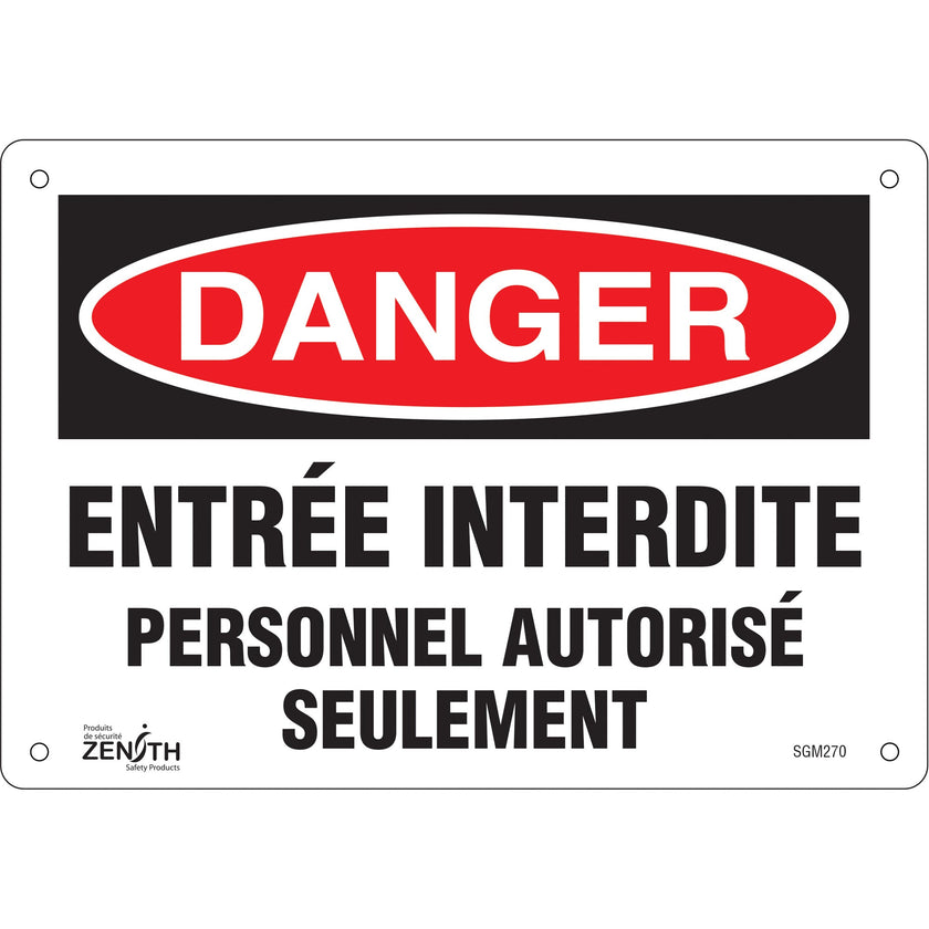 "Personnel Autorisé Seulement" Sign, 7" x 10", Plastic, French
